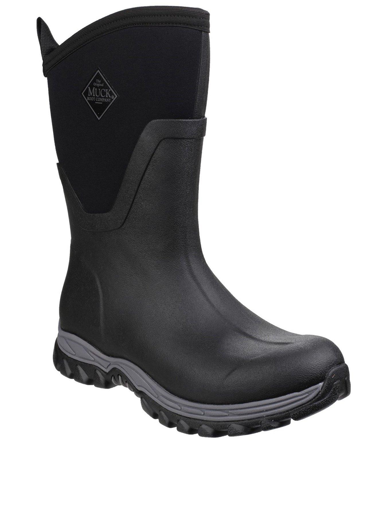 Muck boots arctic ice extreme conditions tall rubber men s winter boot with arctic grip outsole. At 13 inches tall the mid height are a shorter version of muck boots arctic sport pro boots which have been tested and trusted in antarctica. The stretch fit top line binding keeps the boots snug to your legs to keep cold air out and warm air in and provides the perfect fit for wide calves. Men s arctic sport mid.