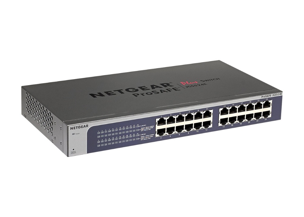 Netgear 24 port gigabit ethernet unmanaged switch plug and play jgs524na 7 mfg. Switches with superior mounting options netgear easy mount switches offer flexible mounting options using a version of our virtually anywhere tm mounting system. Ieee 802 3i 10base t ethernet ieee 802 3u 100base tx fast ethernet ieee 802 3ab 1000base t gigabit ethernet ieee 802 3z 1000base x gigabit ethernet ieee 802 3x flow control uplink ports. The netgear jgs524 unmanaged switch is designed for desktop or rackmount and features 24 port gigabit ethernet prosafe lifetime protection and more.